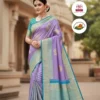 Crafted from premium silk, this exquisite saree features a mesmerizing blend of lavender and turquoise with intricate zari motifs that elevate its grace.Crafted from premium silk, this exquisite saree features a mesmerizing blend of lavender and turquoise with intricate zari motifs that elevate its grace.Beautifully draped, it offers a luxurious feel and a flattering silhouette, ensuring ease of movement and comfort.Ideal for festive occasions or elegant gatherings, this saree embodies timeless sophistication and elegance that will captivate every admirer.